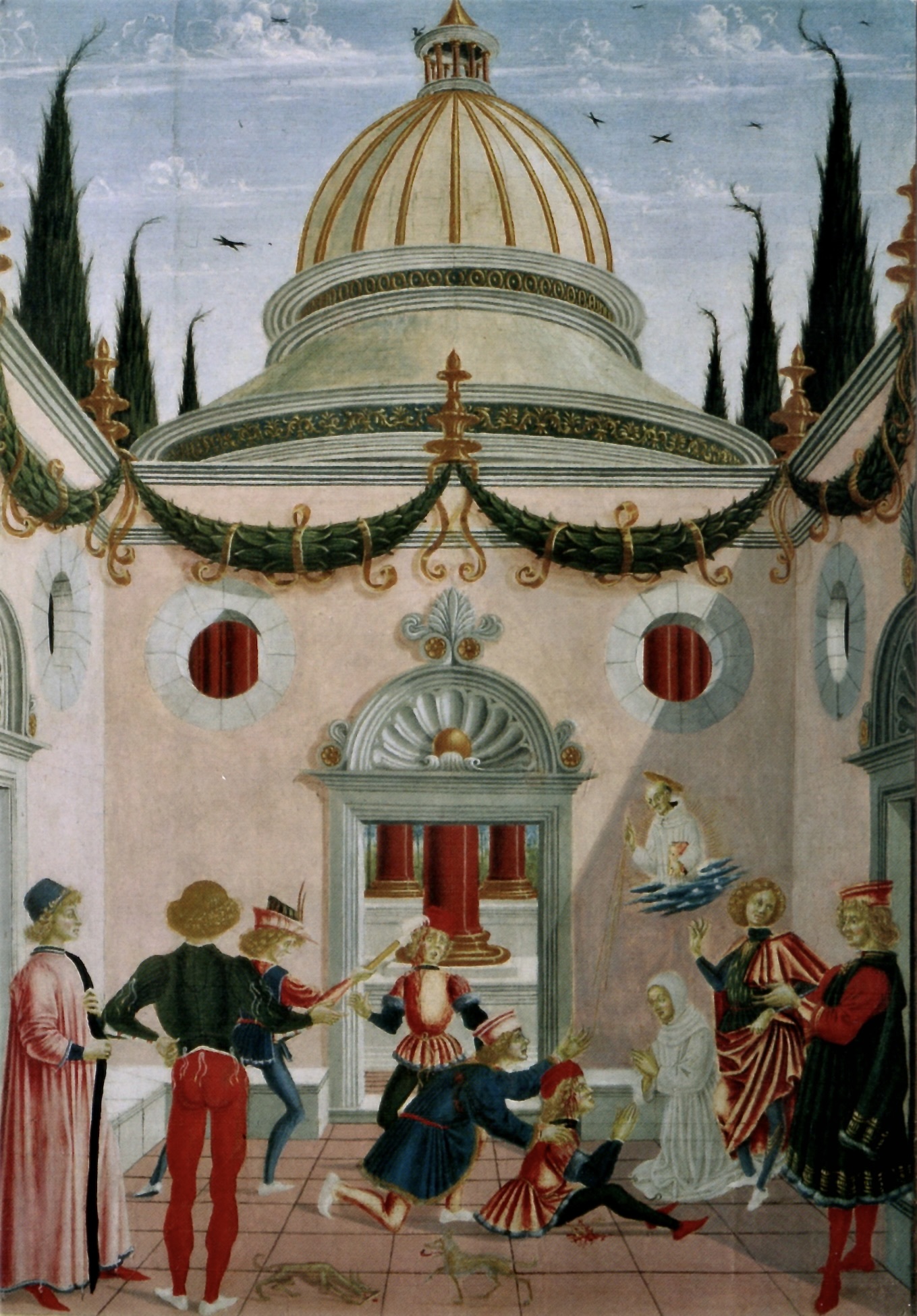 Ces scènes sont un cycle de huit panneaux de bois conservés à la Galerie nationale d’Ombrie à Pérouse