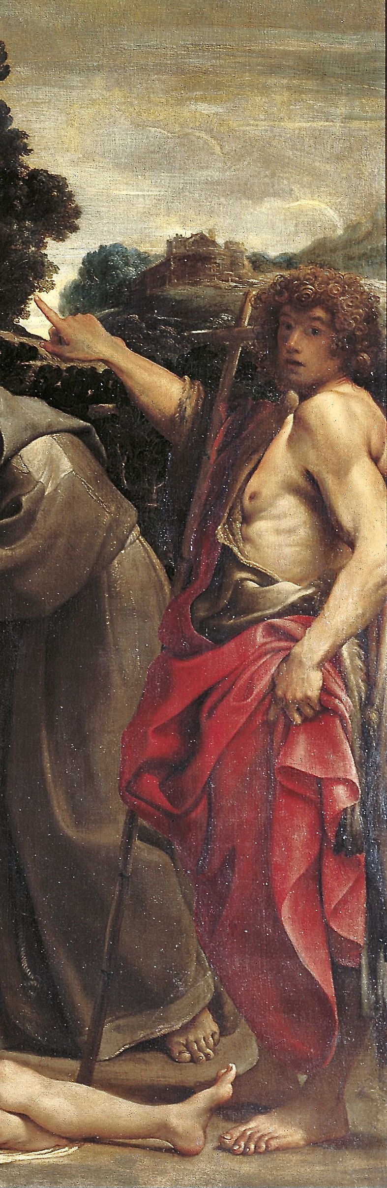 Mantegna excelle dans l’art du raccourci, il sait installer sa composition sur une scène élevée, du haut de laquelle ses grandes figures, ont un air altier.