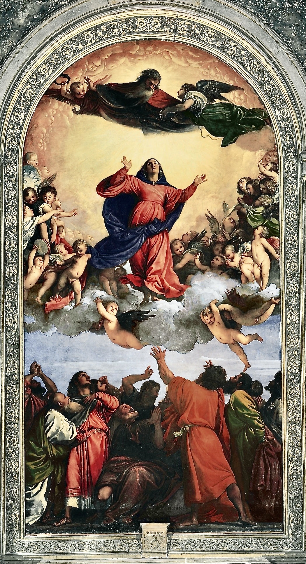 Assomption de la Vierge – 1516-1518 – Titien Ce retable est conservé sur le Maître-autel de la basilique Santa Maria Gloriosa dei Frari, Italie